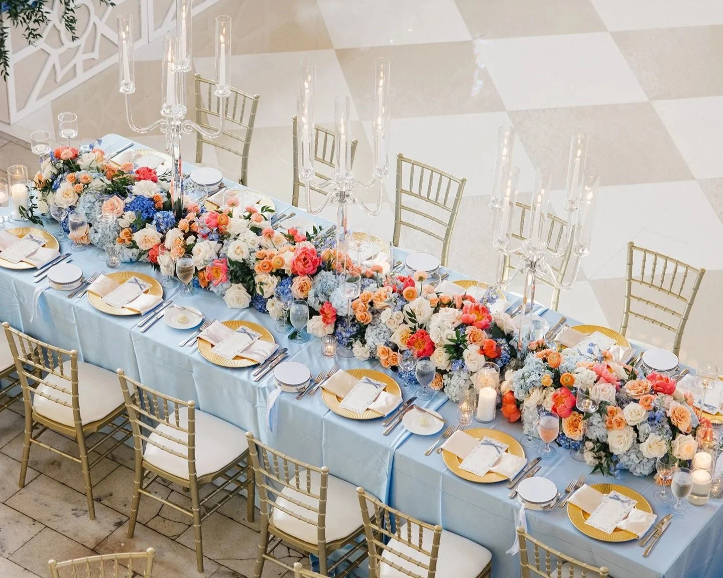 Before selecting individual elements, your table design should align with your event’s overall aesthetic.